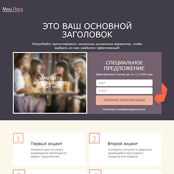 Используйте нашу галерею с более чем 250 макетами посадочных страниц различных категорий для web, социального и мобильного входящего трафика, чтобы настроить процесс получения клиентов прямо сейчас. Готовые landing page – ваш ключ к успеху.